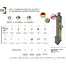 Dumvada sistēmas standarta komplektācijā ietilpst: keramzītbetona moduļbloki, keramikas caurule, pieslēguma trejgabals 90°, tīrīšanas trejgabals, kondensāta trauks, izolācijas vate, revīzijas durtiņas, ventilācijas reste, izolācija pieslēgumam, līme keramikai 3 kg, mūrjavas maisījums 25 kg, montāžas instrukcija, atbilstības deklarācija, 30 gadu garantijas apliecinājums.