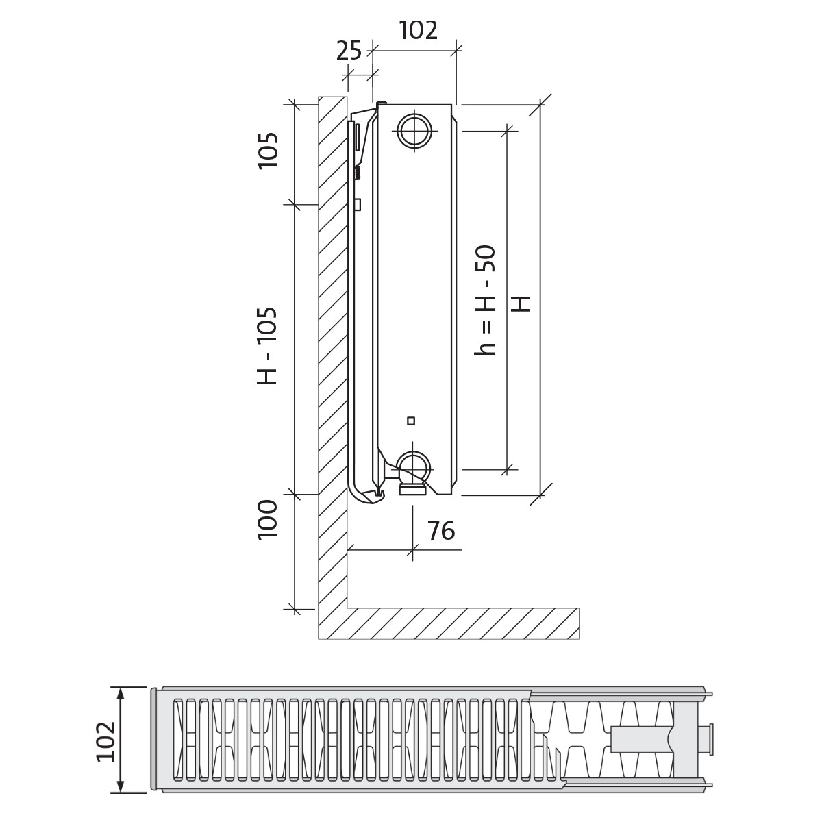 - Papildu aprīkojums : stiprinājuma kronšteini, noslēgkorķis, atgaisotājs – komplektā ar radiatoru.