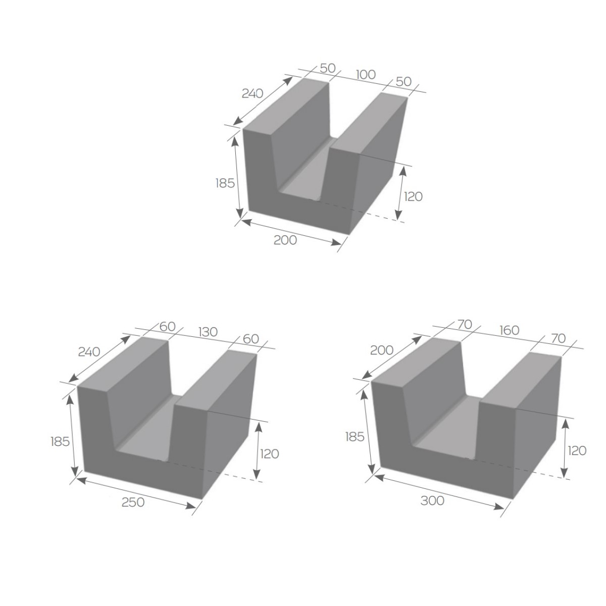 - Platumā un augstumā tie saskan ar FIBO® Efekt 200 mm, 250 mm un 300 mm blokiem