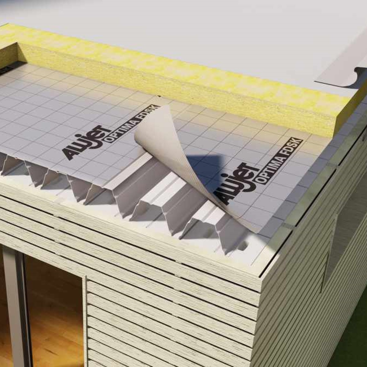 Alujet Optima FDSK ir pilnas virsmas pašlīmējoša tvaika barjera, kas paredzēta lietošanai uz trapecveida un lēzeniem jumtiem. Tiek izpildītas gan DIN 4108-7, gan DIN 18234-1 un 2 prasības. Izmantojot alumīnija kompozītu, tika izveidota membrāna, kas, pateicoties tās nelielajam svaram, 1,50 m platumam un augstajai plīšanas izturībai, ir ideāla membrāna lielām platībām.