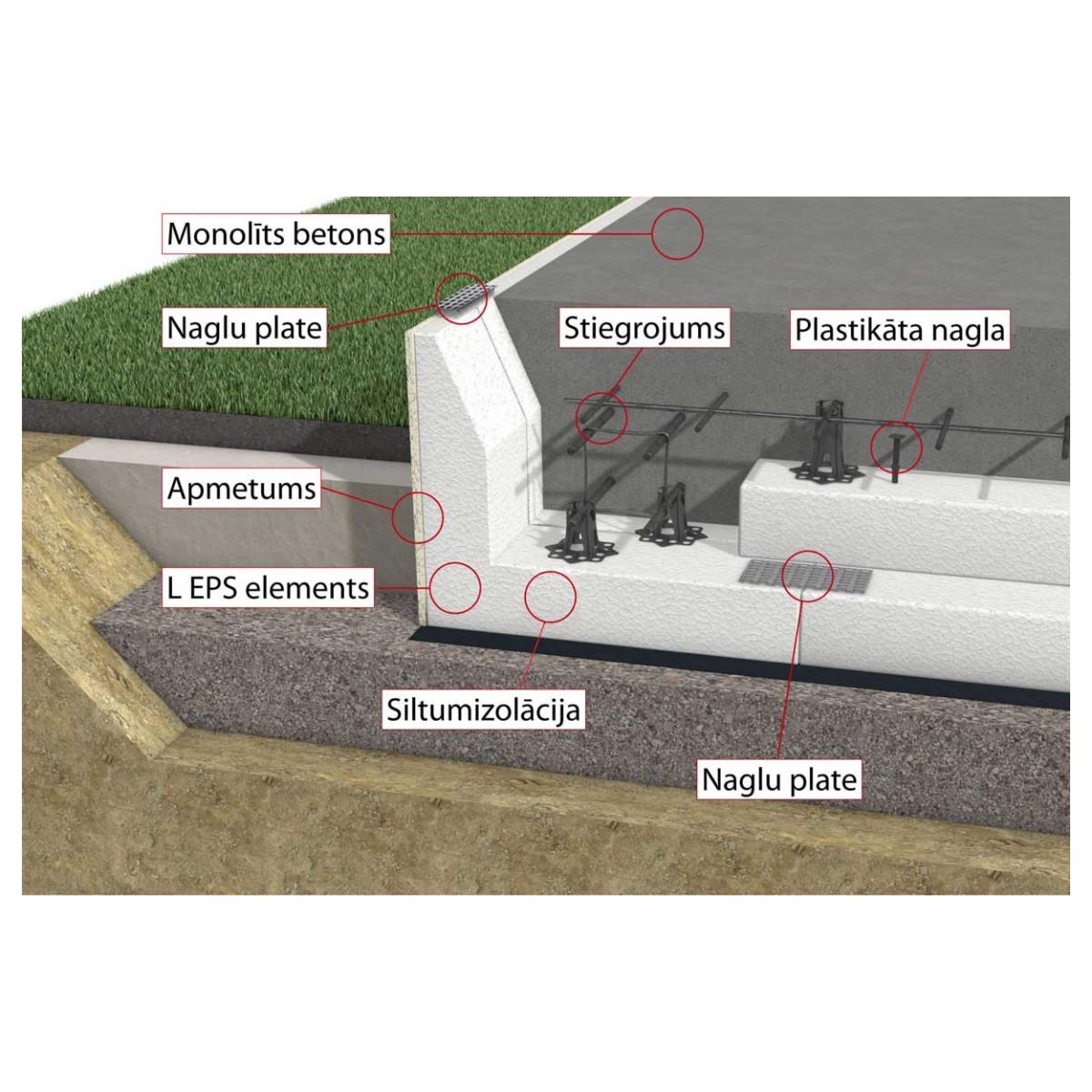 TENAPORS L EPS 200 elementi betona plātņu pamatiem ir paredzēti plātņu pamatu izbūvei nelielām koka karkasa dzīvojamajām ēkām. Kombinējot elementu ar izolācijas plāksnēm tiek izveidots veidnis, kurā ielejot betonu veidojas monolīti plātņveida pamati. Tādā veidā tiek iegūta monolīta konstrukcija, kura tiešā veidā nesaskaras ar grunti un neveido siltuma tiltus. Šāda tipa konstrukcijai ir ne tikai augsta izturība pret grunts noslīdēšanu un deformāciju, bet arī ar teicamas siltumtehniskās īpašības.