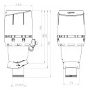 - Izmēri: Caurules izmērs Ø 125 mm, ārējais diametrs Ø 225 mm, augstums virs jumta aptuveni 500 mm.