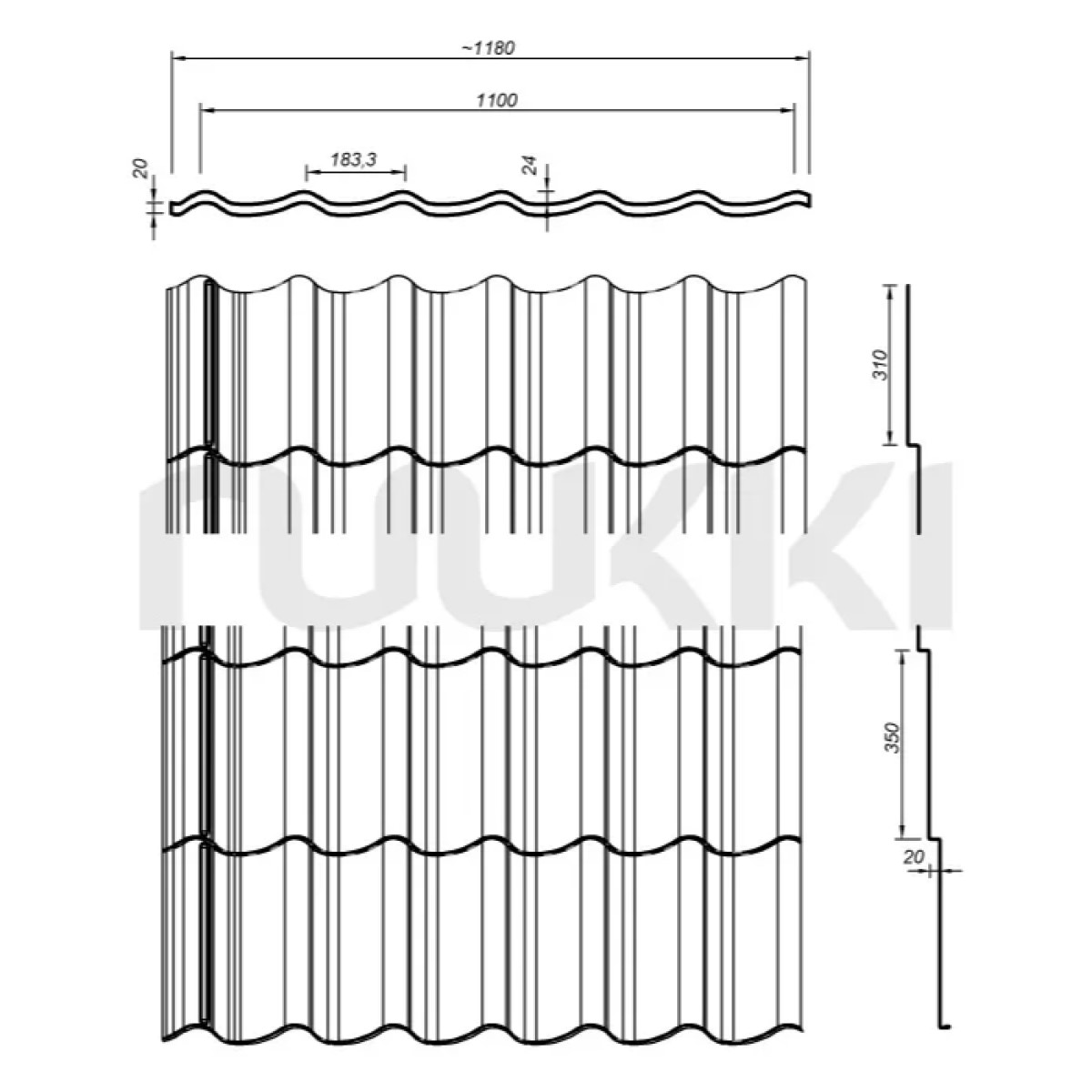 - Pārklājuma tips: GreenCoat Pural BT – ārkārtīgi izturīgs izstrādājums, pārklājums ar augstu skrāpējumu izturību izmantošanai jumtu būvniecībā.