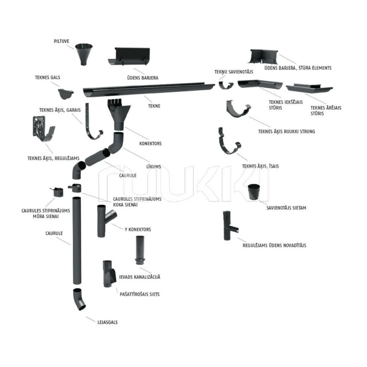 Ruukki lietus ūdensnoteku sistēma efektīvi savāc un aizvada ūdeni no jumta. Ūdensnoteku forma un līkumi ir izstrādāti tā, lai nodrošinātu visefektīvāko ūdens savākšanu. Ruukki lietus ūdensnoteku sistēma ir piemērota visa veida jumtiem - tērauda, dakstiņu, bitumena šindeļu vai jebkura cita jumta materiāla.
