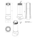 - Izmēri: Kanāla izmērs Ø 110 mm, ārējais Ø 160 mm, augstums virs jumta aptuveni 500 mm.