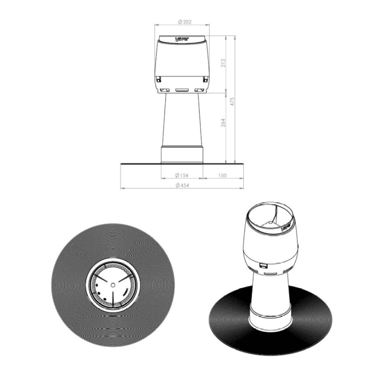 Vilpe Alipai Flow 110 Deflektors lēzenu bitumena jumtu konstrukcijas ventilēšanai. Uzstāda ar karstu bitumenu starp divām materiāla kārtām.