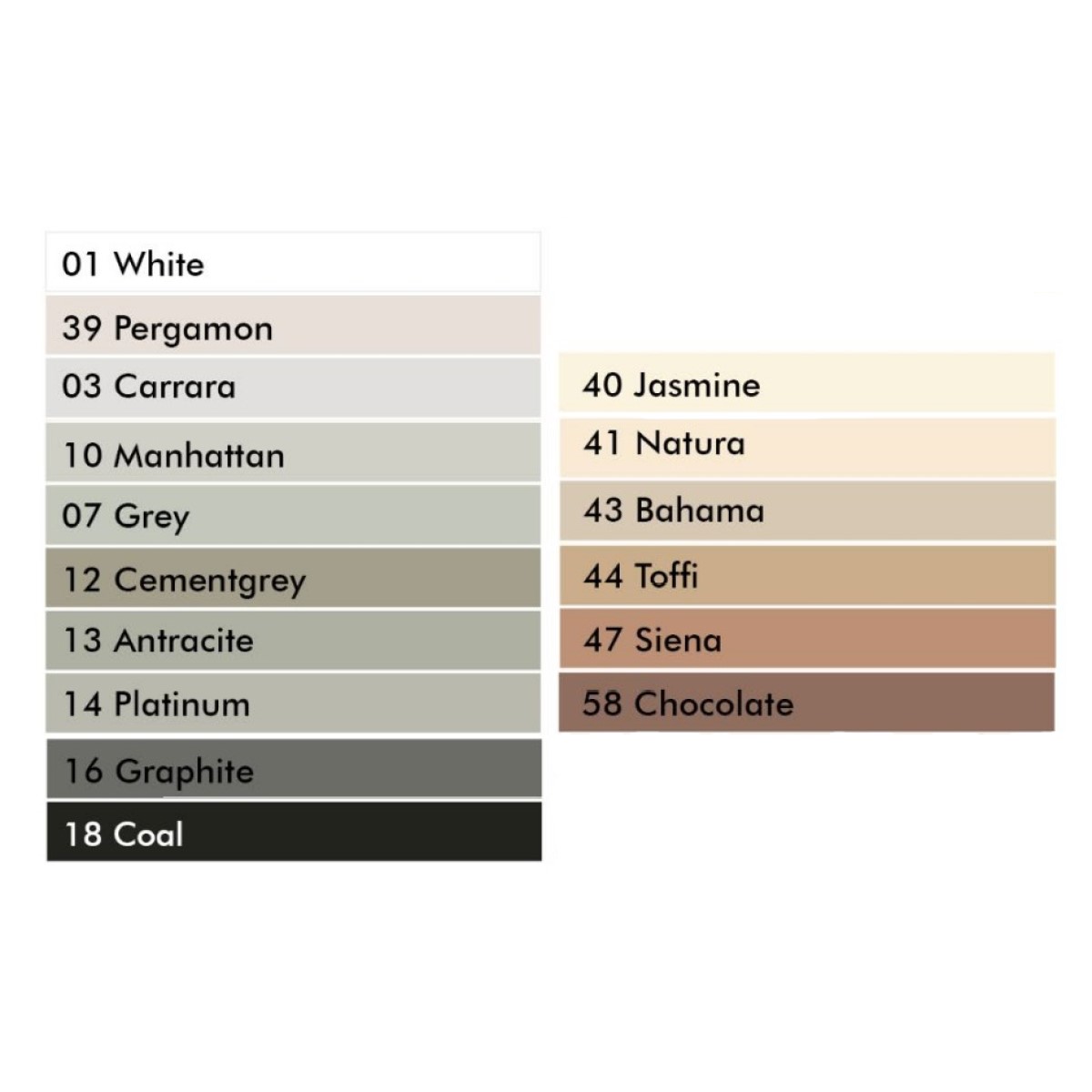 - Iepakojuma tilpums 280 ml, pieejams daudzās krāsās, baltā, antracītā, cementa pelēkā, caurspīdīgā un citās