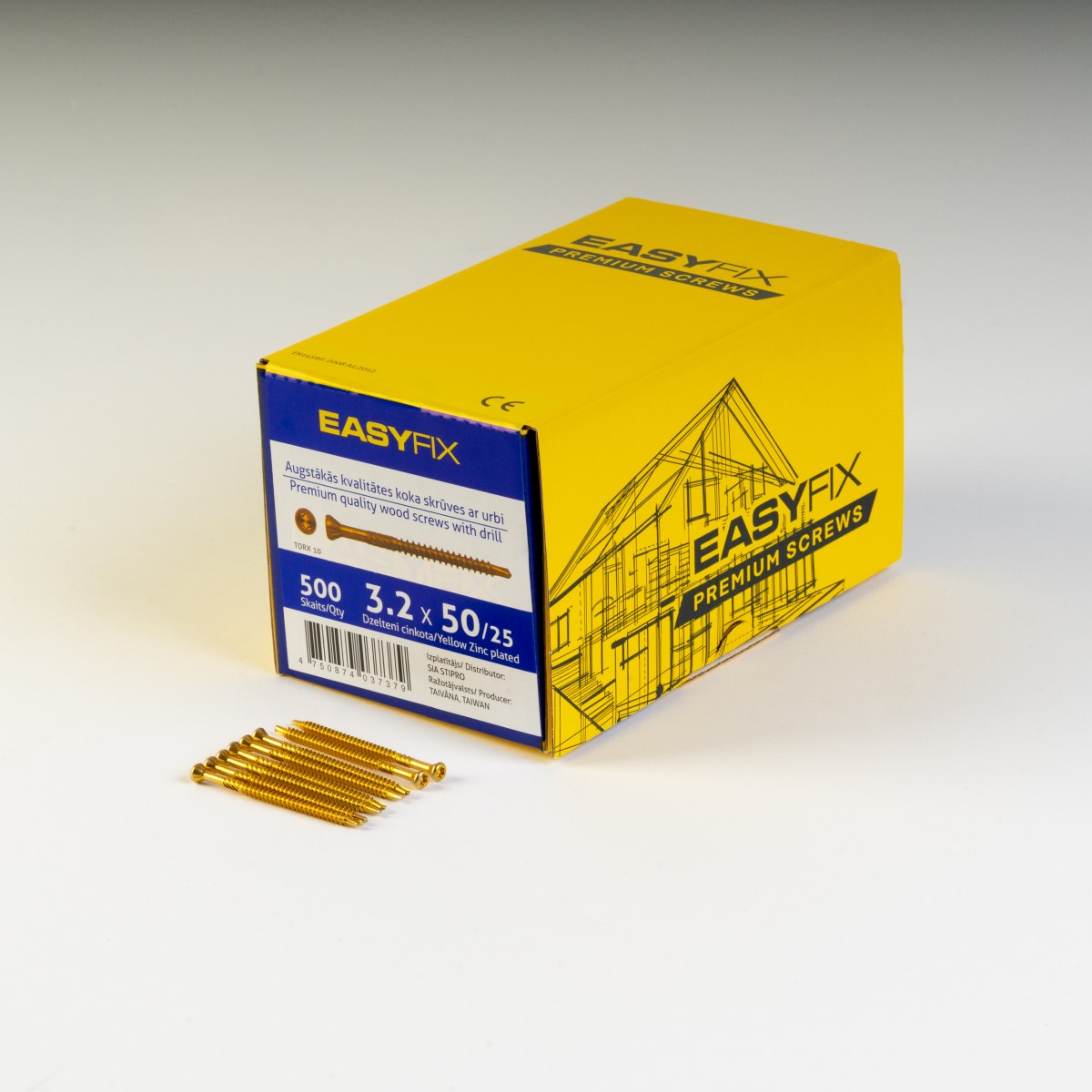 Easy-Fix Koka skrūve ar urbi Drill-Mini Torx 10, 3.2x40mm (500gab)