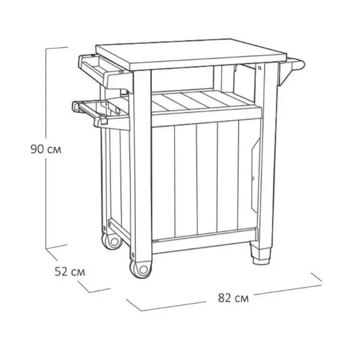 - Aprīkots ar funkcionālu nerūsējošā tērauda virsmu un parocīgu rokturi ar dvieļu āķiem, lieliski darbosies svarīgās ģimenes sanāksmēs uz terases vai dārzā.