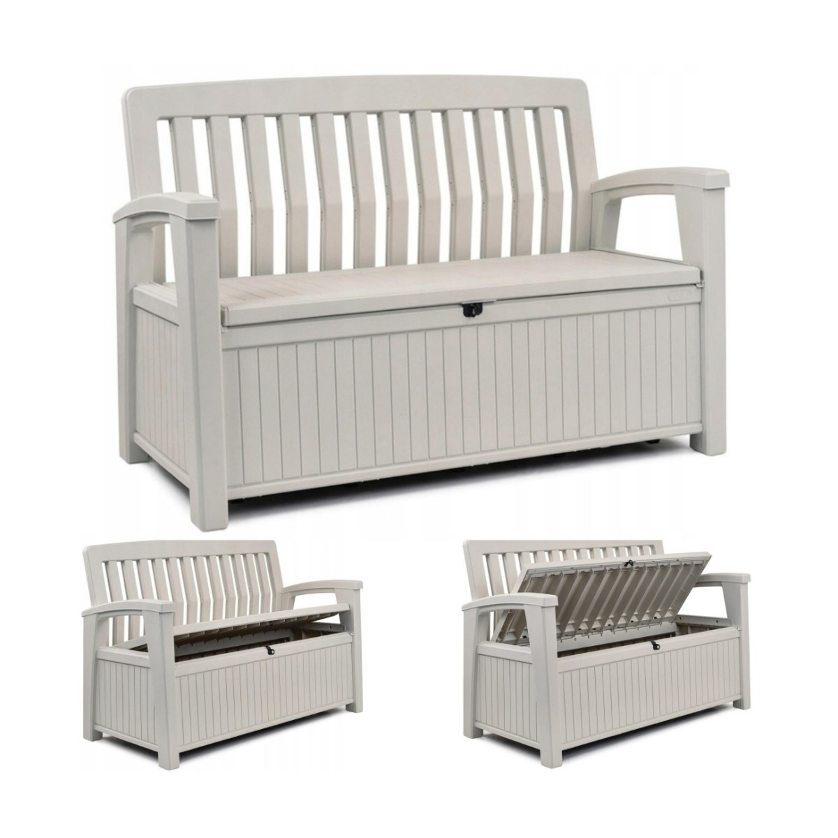 Keter Patio Storage Bench daudzfunkcionāla dārza mēbele divi vienā - atpūtas sols un uzglabāšanas kaste. Uzglabāšanas sols ir pievilcīgs un praktisks papildinājums jebkuram pagalmam vai dārzam, nodrošinot ērtas sēdvietas diviem pieaugušajiem. Praktiski piemērots glabāšanas sols ar 227L ietilpību, kas ir lieliski piemērots dārza instrumentu, dārza mēbeļu un citu piederumu glabāšanai. Izgatavots no izturīga materiāla, kas nerūs, nepūst un nesairst laika apstākļu ietekmē un tas ir viegli kopjams.