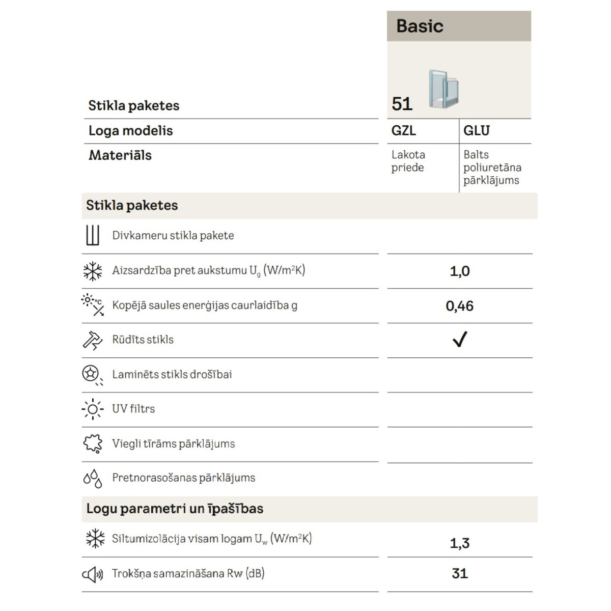 - Uzlabota stikla pakete, loga energoefektivitāte - U=1.3W/m2K.