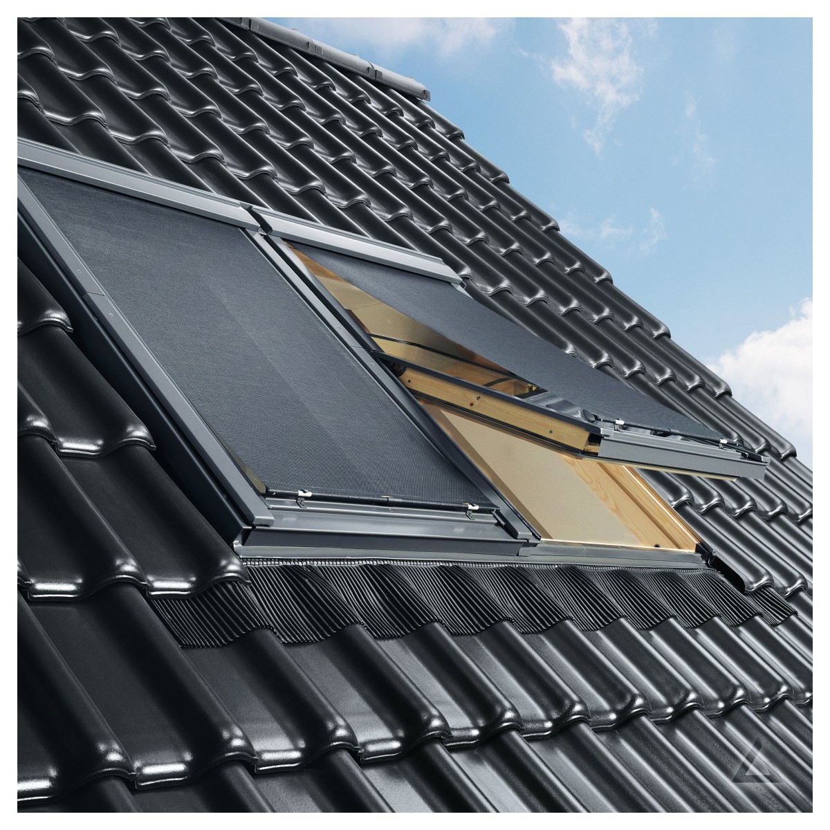 - VELUX saulessargi nodrošina labu aizsardzību pret karstumu saulainās dienās, vienlaikus saglabājot skatu uz ārpusi, izmantojot caurspīdīgu sieta audumu.
