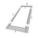 Pieslēguma elementi: Pieslēgums sastāv no četriem pamatelementiem. Tās apakšējai daļai ir līmējošs pārklājums, kas nodrošina drošu loga savienojumu ar jumta segumu.