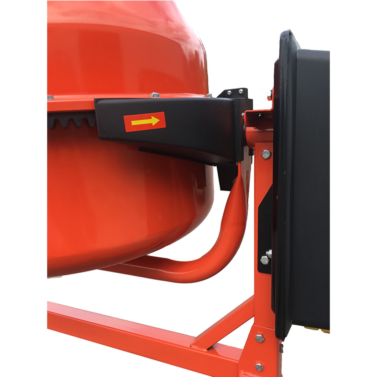- Liels, ērts augstuma regulēšanas rats ar bremzi, kas ļauj nofiksēt betona maisītāju attiecīgajā pozīcijā