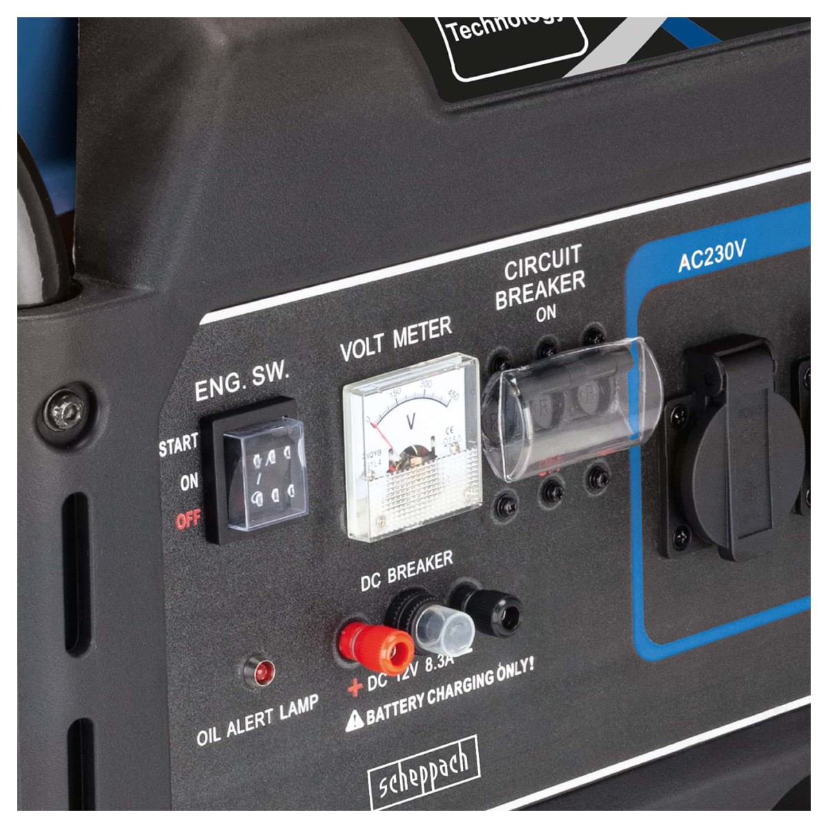 - Integrēta pārslodzes aizsardzība, sprieguma mērītājs(voltometrs) un eļļas līmeņa brīdinājuma indikators nodrošina optimālu drošību.