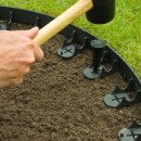 - Plastmasas zāliena apmaļu piestiprināšanai pie pamatnes/sablīvētas augsnes.