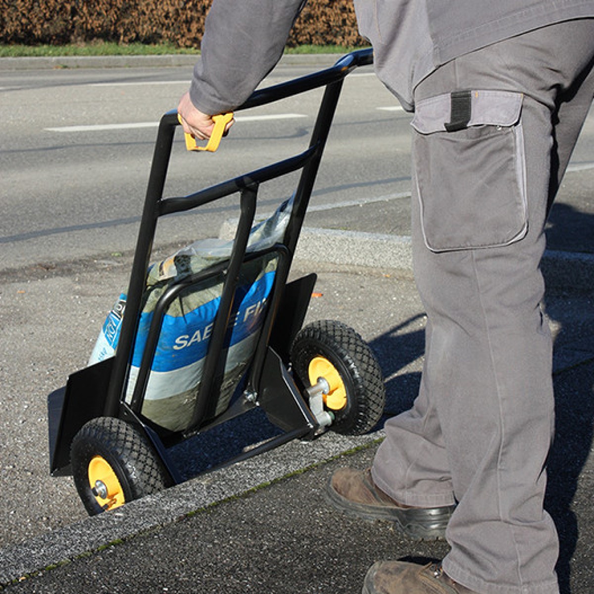 - 2 pneimatiskie riteņi Ø 260 mm (PF 26), rullīšu gultņi, metāla diski.