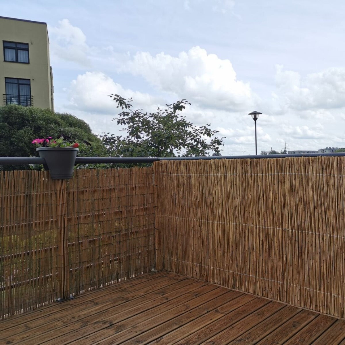 - Dažādu izmēru sarullējamo nožogojumu plus ir aizsardzība pret vēju un savas teritorijas norobežošana.
