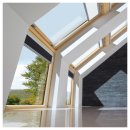 - Fasādes-jumta logu kompleksi ir paredzēti uzstādīšanai jumtos ar slīpumu no 15° līdz 55°.