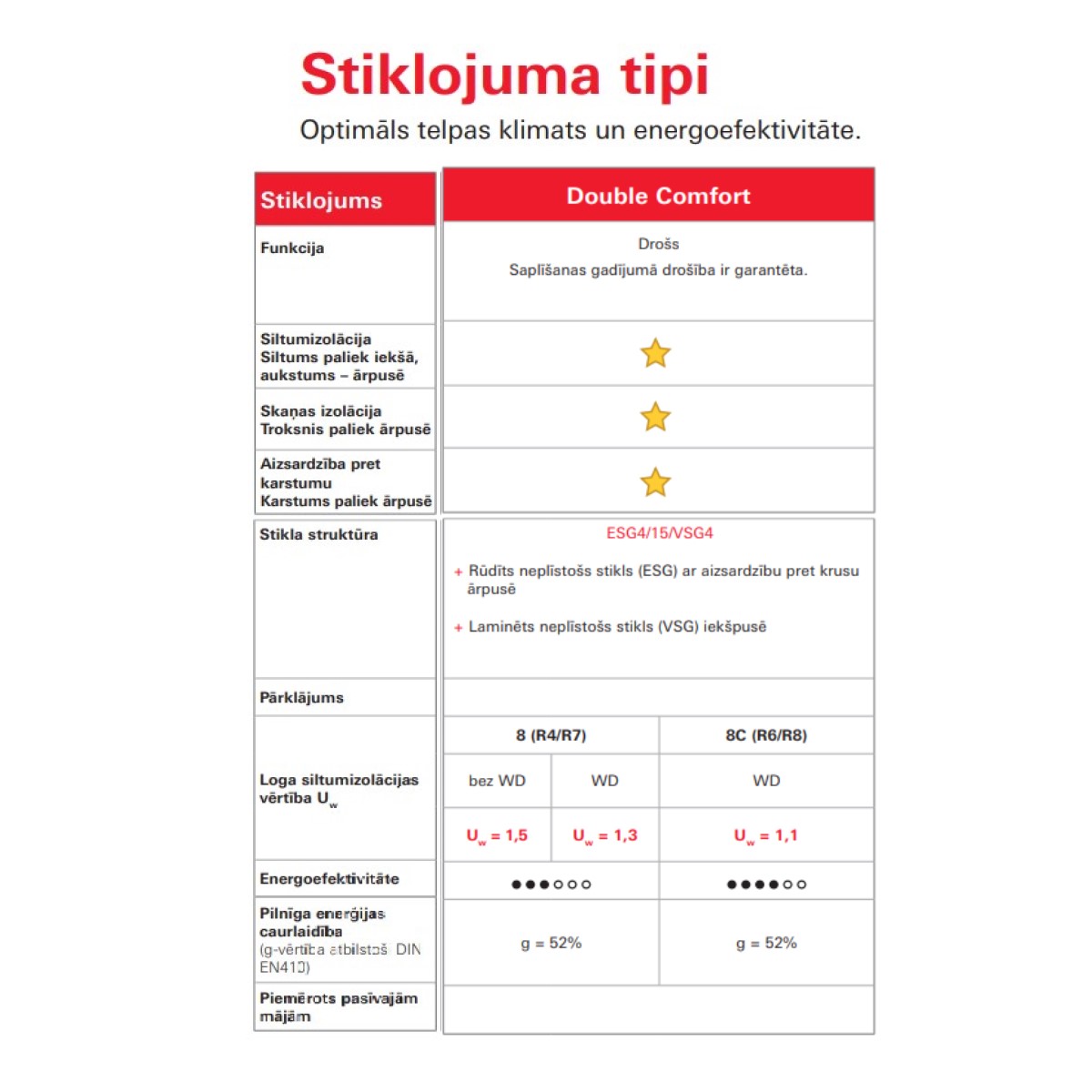 - Ug Siltumizolācija stiklam: 1,0 W/m2K