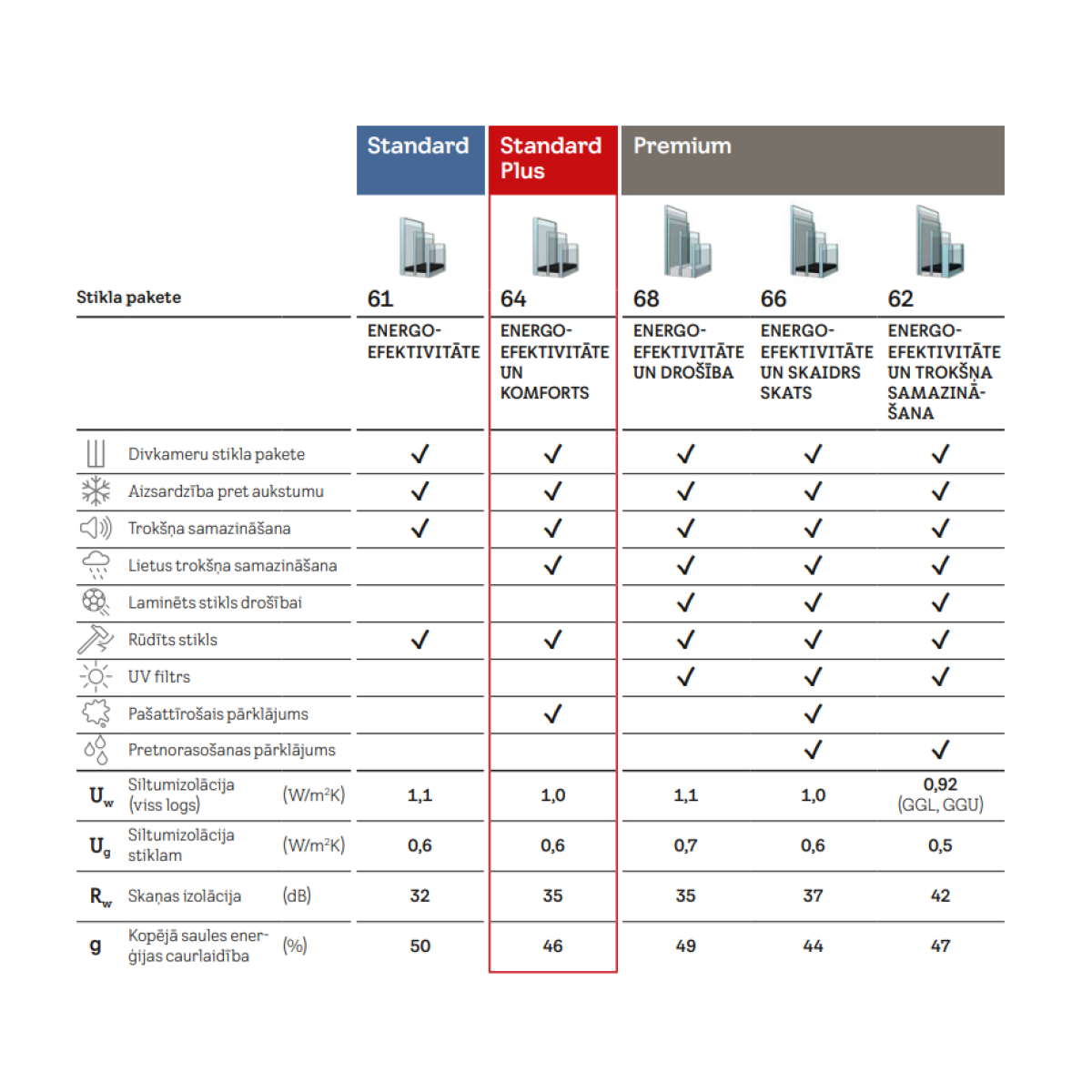 - Divkameru stikla pakete - energoefektivitāte Uw 0,92