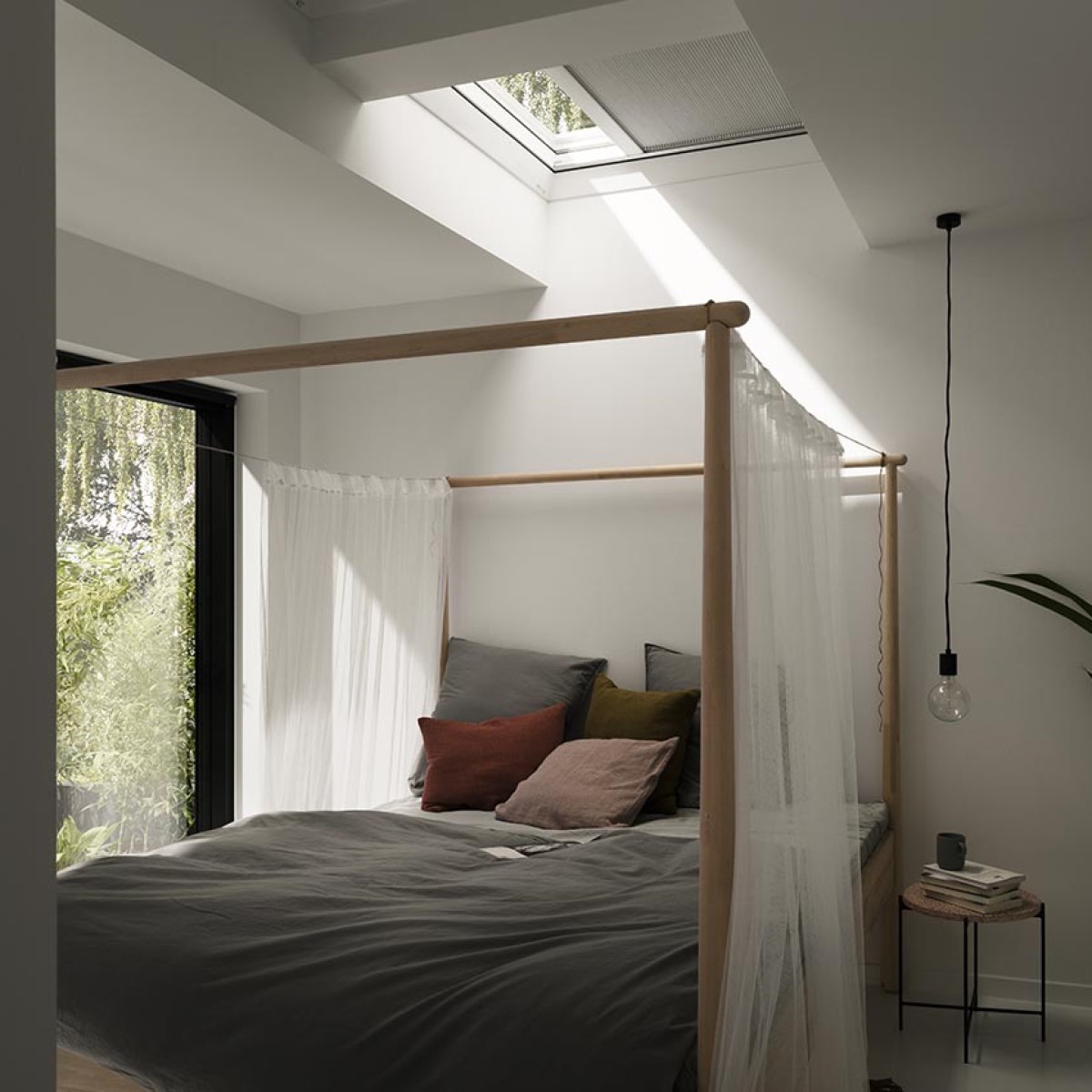 VELUX FSK aptumšojošās energoefektīvās žalūzijas virsgaismas logiem samazina gaismu telpā un aizsargā no aukstuma. Ideāli piemērotas guļamistabām un viesistabām.