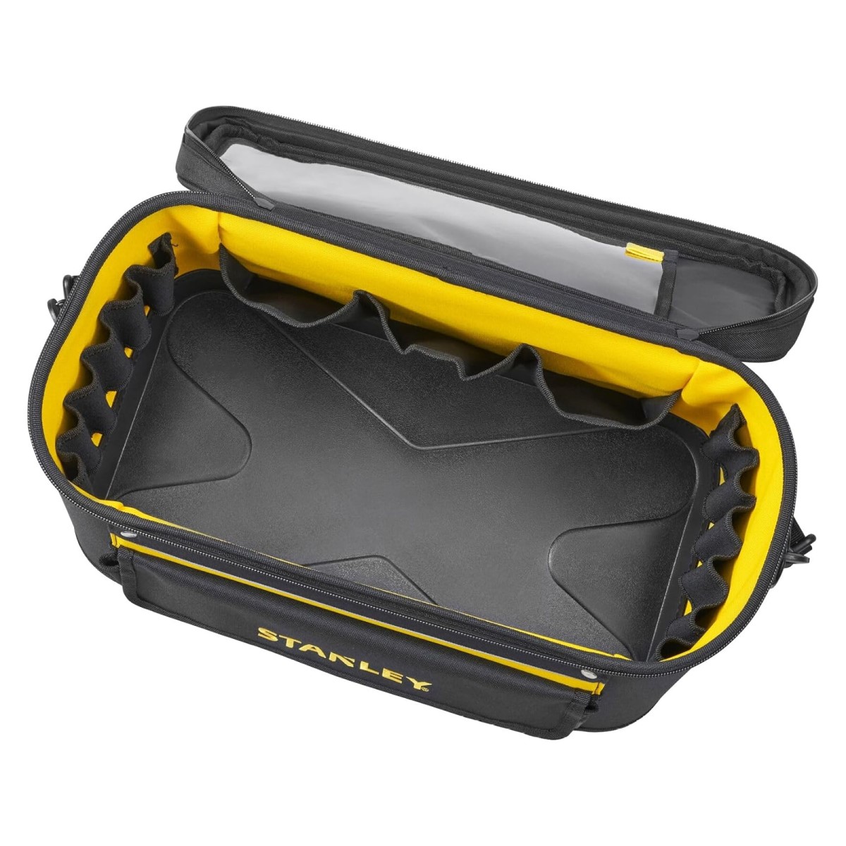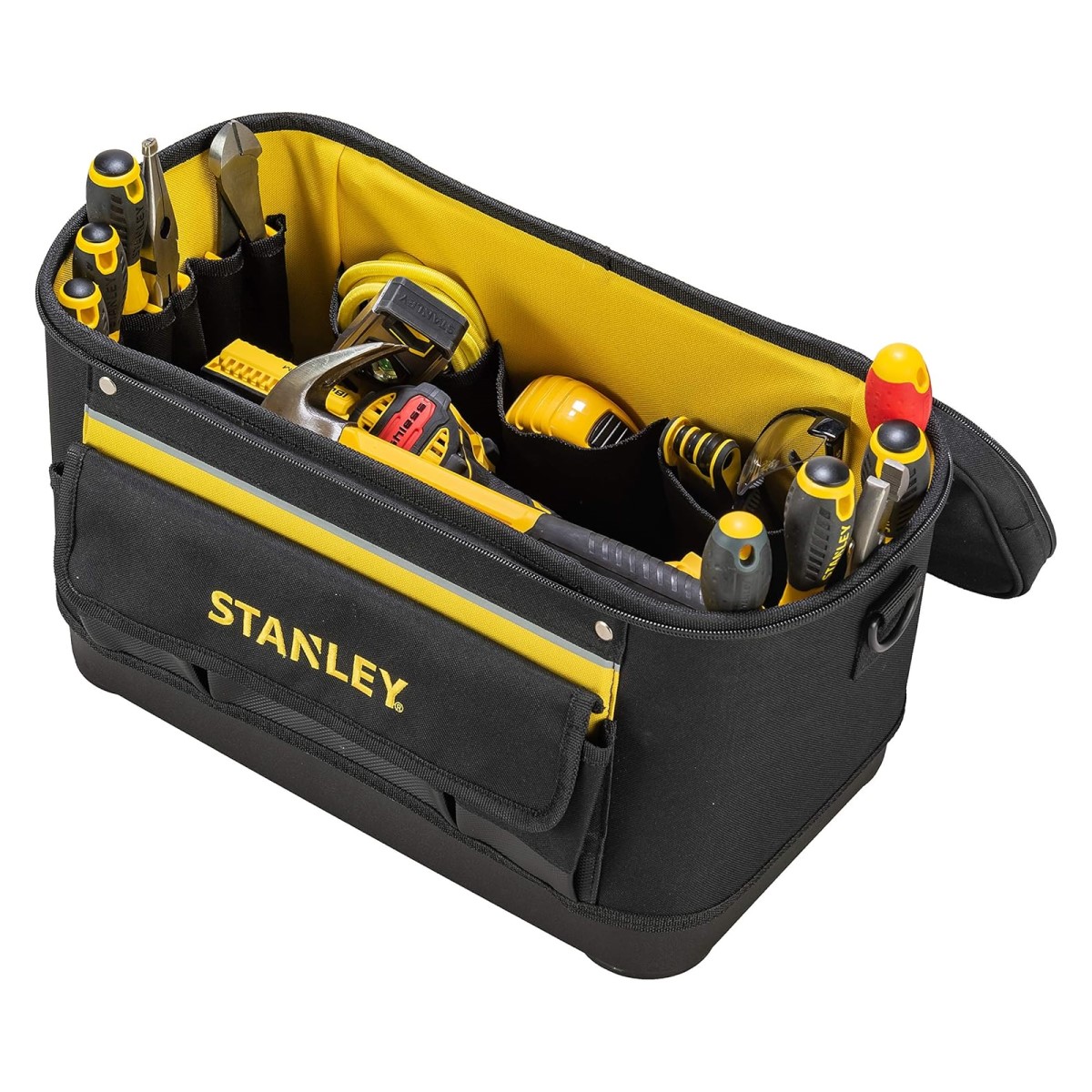 Stanley Rigid universālā instrumentu soma ar vāku ir izturīga un ilgmūžīga pateicoties tās izturīgajam materiālam. Vairākas iekšējās un ārējās kabatas nodrošina maksimālu organizāciju. Viegla instrumentu pārvadāšana ar regulējamu plecu siksnu. Ārējās aizmugurējās un priekšējās kabatās droši var uzglabāt mazas daļas vai personiskos priekšmetus. Atsevišķš caurspīdīgs nodalījums dokumentiem. Spēcīga, pastiprināta plastmasas apakša aizsargā no mitrām virsmām.