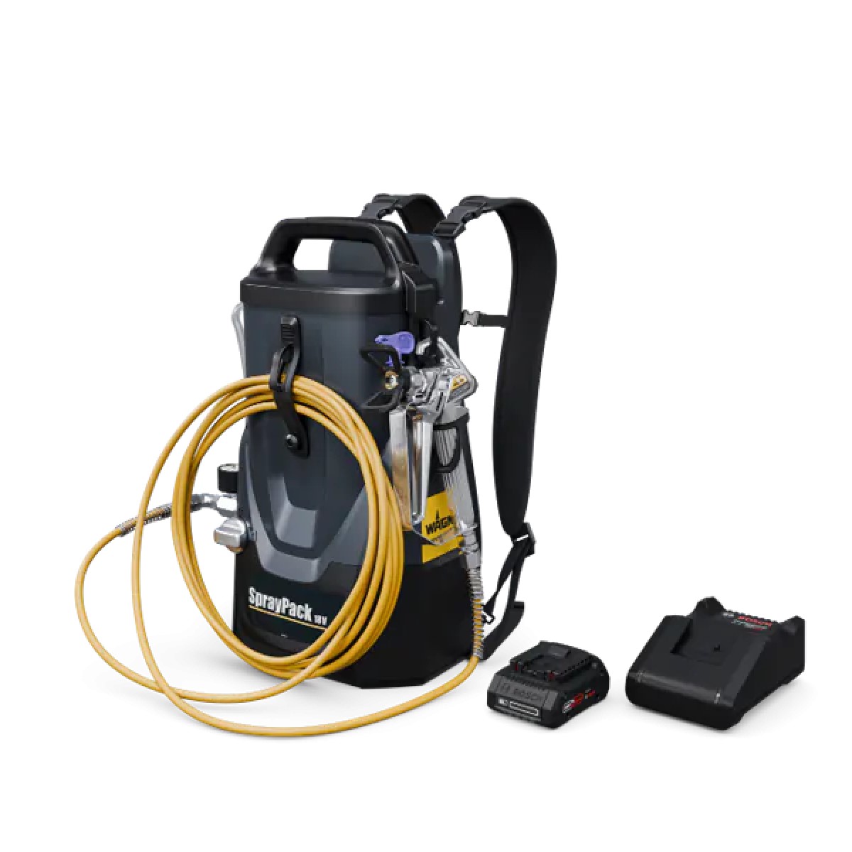 WAGNER 18V Spraypack ir ideāls risinājums profesionāļiem, kuri vēlas veikt daudzus grūti pieejamus darbus. Šo akumulatora bezgaisa krāsas smidzinātāju ir viegli pārnēsāt kā mugursomu vai aiz roktura.