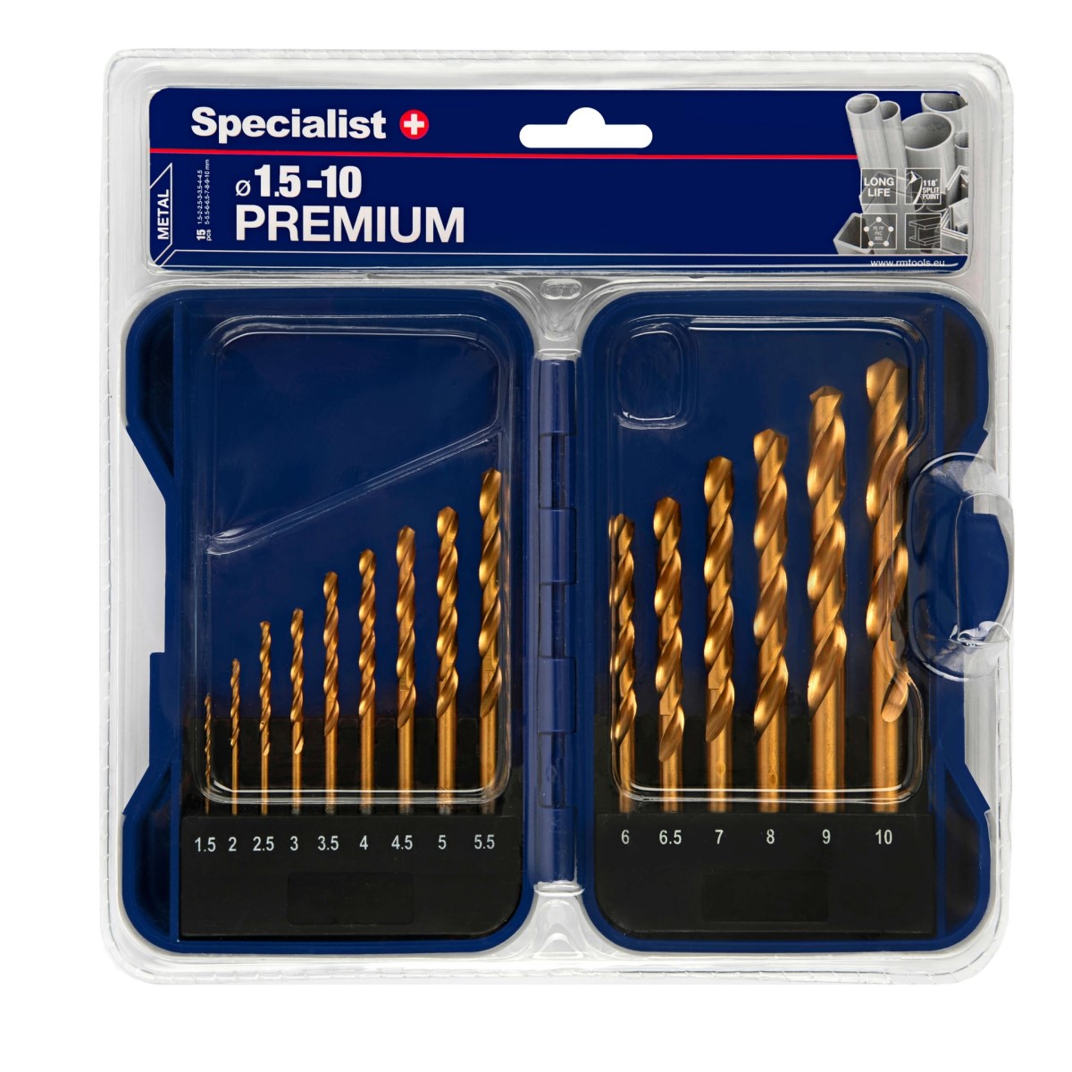 - Komplektā 15 urbji ar diametriem 1.5, 2.0, 2.5, 3.0, 3.5, 4.0, 4.5, 5.0, 5.5, 6.0, 6.5, 7.0, 8.0, 9.0, 10.0 mm
