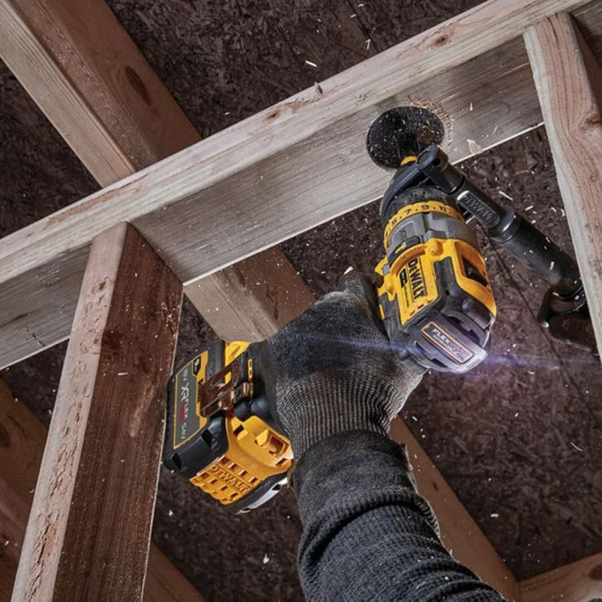 - 42% lielāka jauda, izmantojot XR FLEXVOLT 6Ah akumulatoru, salīdzinot ar 18V XR 5Ah akumulatoru.