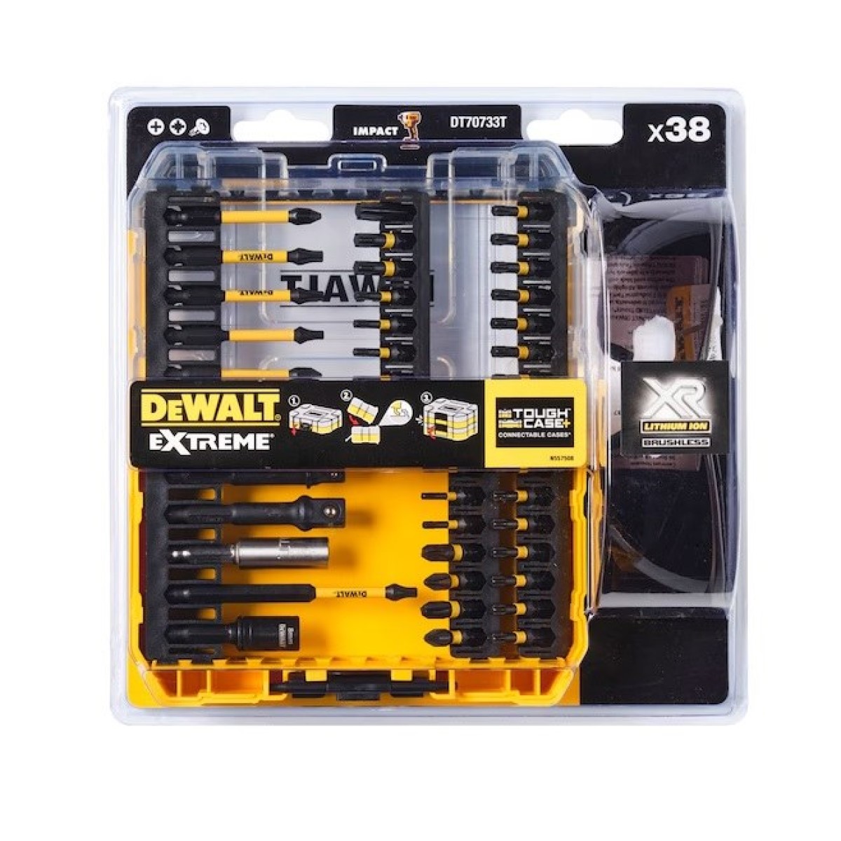 FLEXTORQ skrūvgriežu komplekts (38 gab) ar tonētām aizsargbrillēm. Triecienizturīgi uzgaļi, lai nodrošinātu paaugstinātu izturību pret nodilumu un triecieniem lietojumos ar augstu griezes momenta prasību.