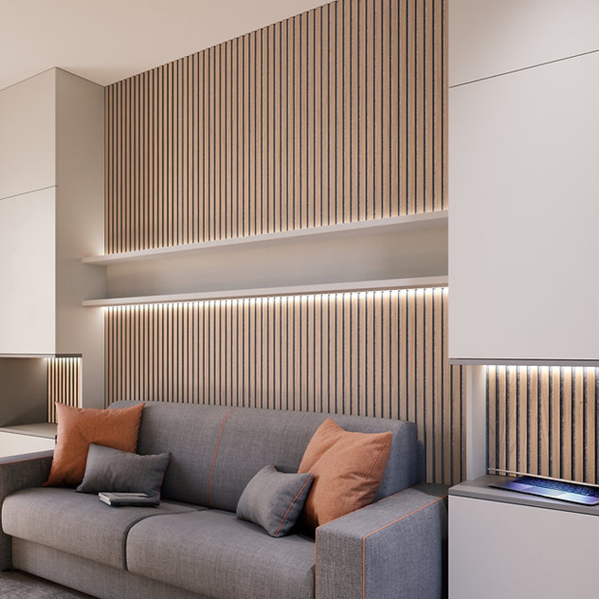 ILLI akustiskais sienas panelis ir moderns dekoratīvās apdares risinājums gan privātām, gan publiskām telpām. Panelis absorbē un uzlabo telpas akustiku, to ir vienkārši uzstādīt un papildināt ar LED apgaismojumu. Ilgākai kalpošanai ieskām eļļot, kas gan pasargās no netīrumu pleķu veidošanās, gan uzlabos paneļa izskatu.