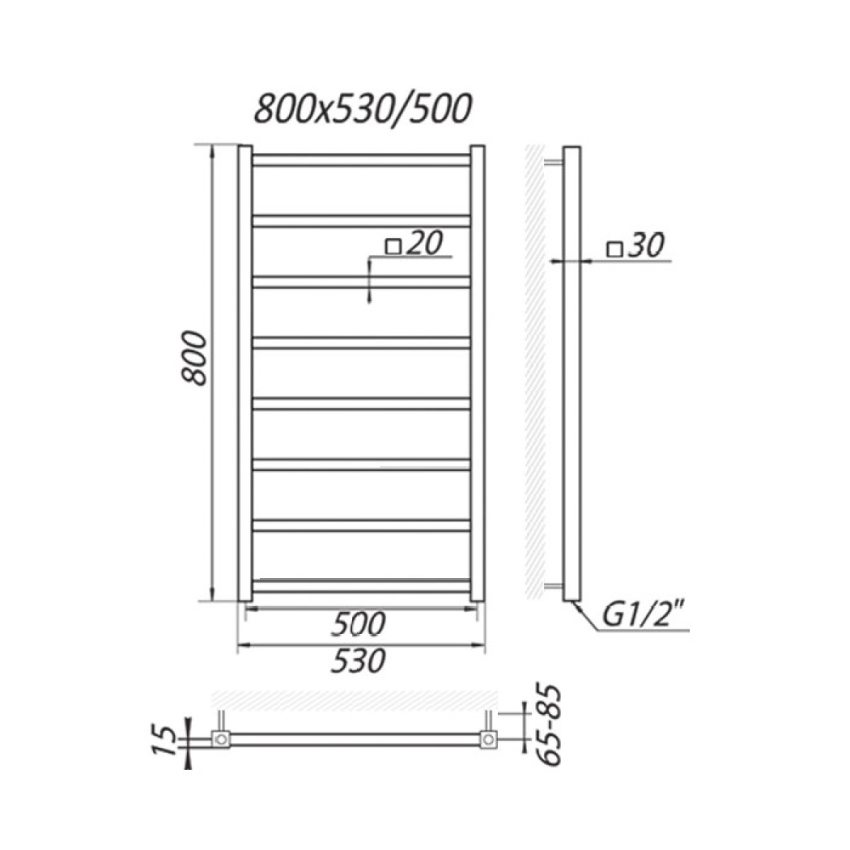 - Centra attālums: 500mm