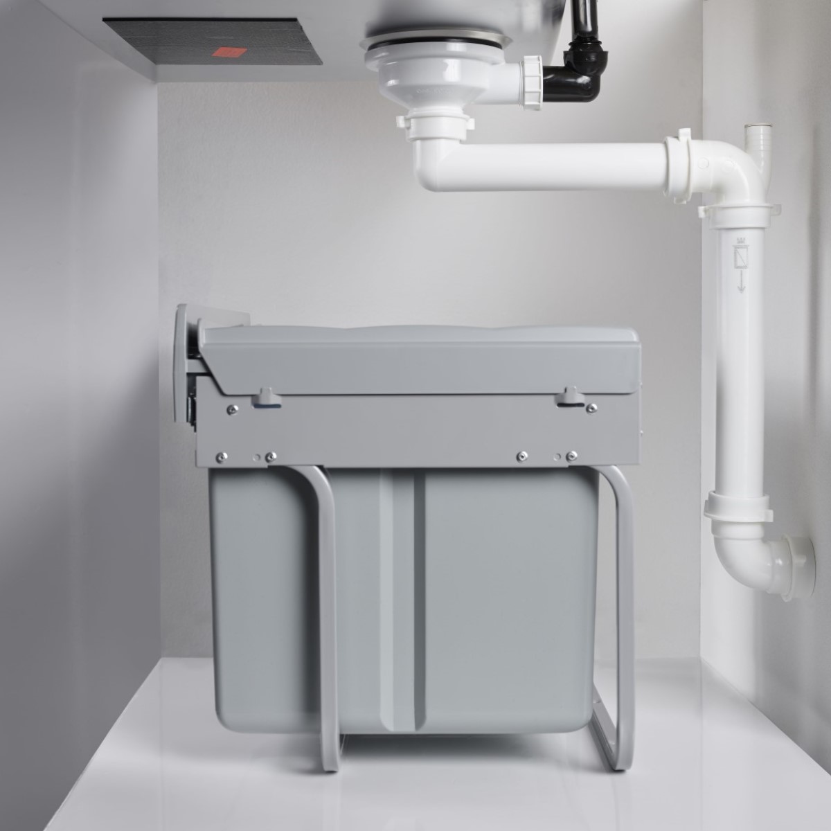 Vieds, vietu taupošs sifons, novēršot vajadzību pēc liela “p slazda” vai pudeļu slazda PANAMA atbrīvo tik daudz vietas, ka gandrīz izveido papildu pusskapi izlietnes pamata blokā.