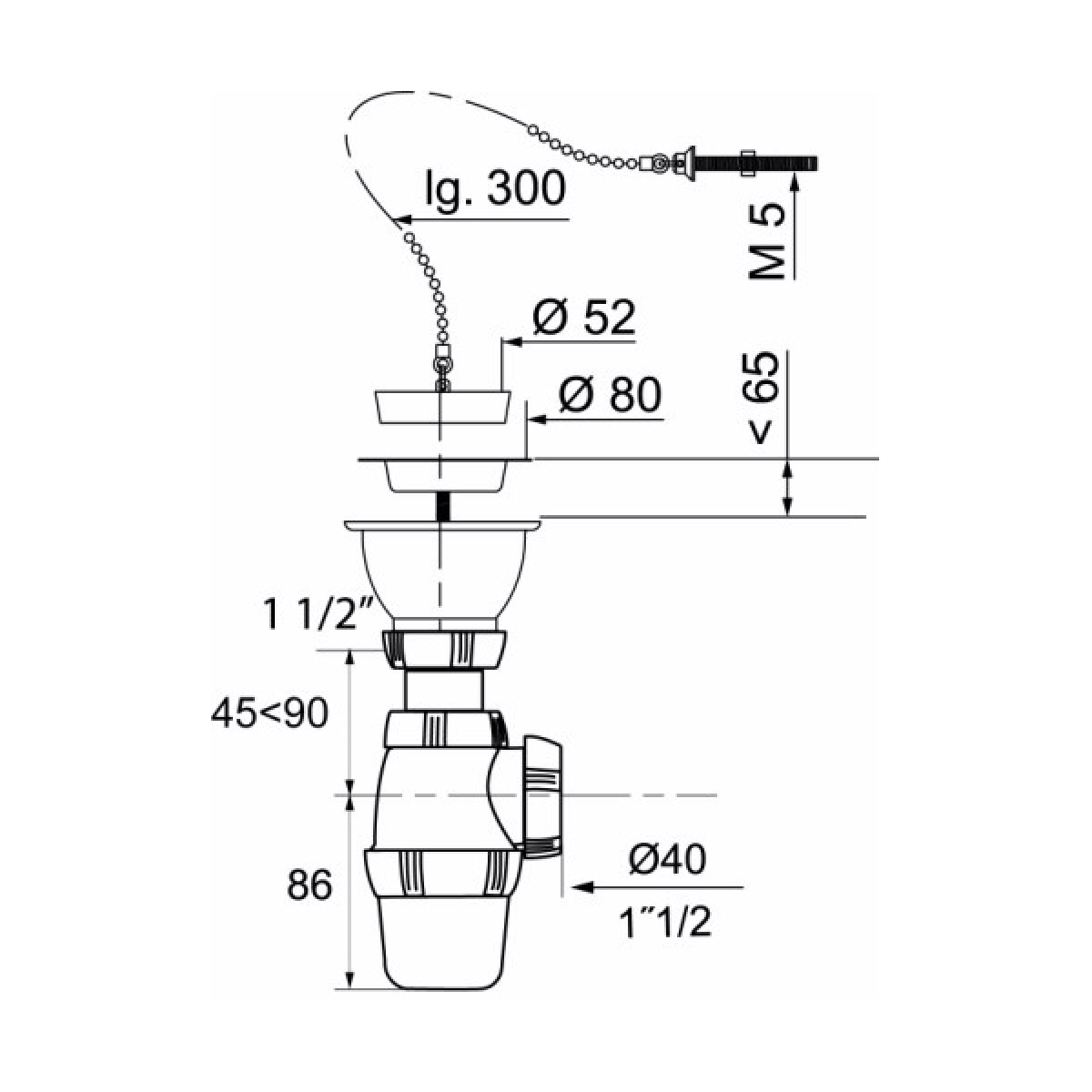 Wirquin Izlietnes sifons ar izplūdi un korķi ar ķēdi, bez noteces, plastmasas