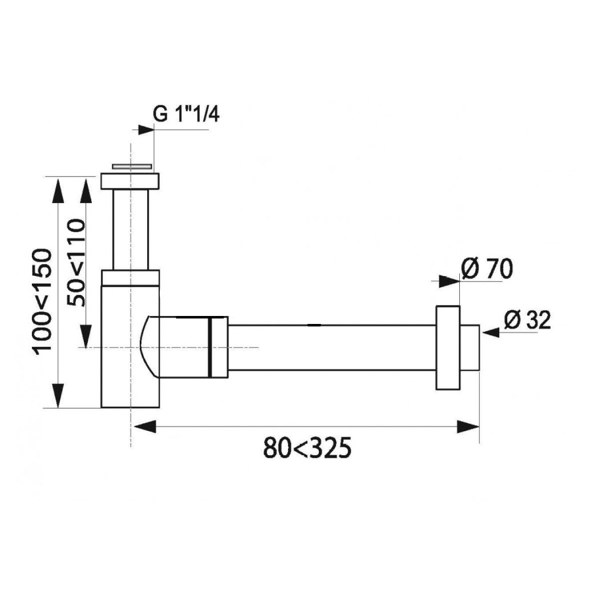 Wirquin Lineis Мини-сифон для раковины , 1.1/4 collas x 32mm, hromēts misiņš