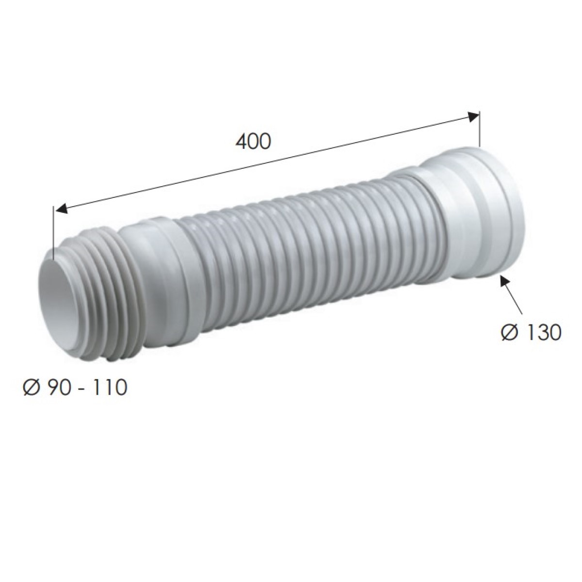 Elastīgs pvc plastmasas cauruļu savienojums tualetei, kas pastiprināts ar neilona spirāli no 90 mm līdz 110 mm, garums 40 cm.