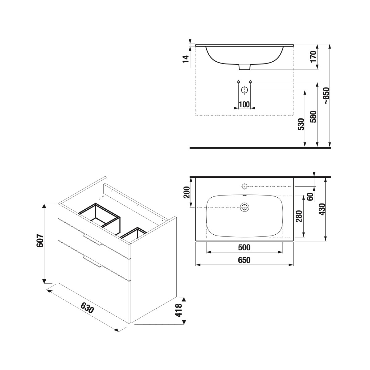 - Keramikas izlietne, ar maisītāja caurumu. Maisītājs neietilpst komplektācijā.