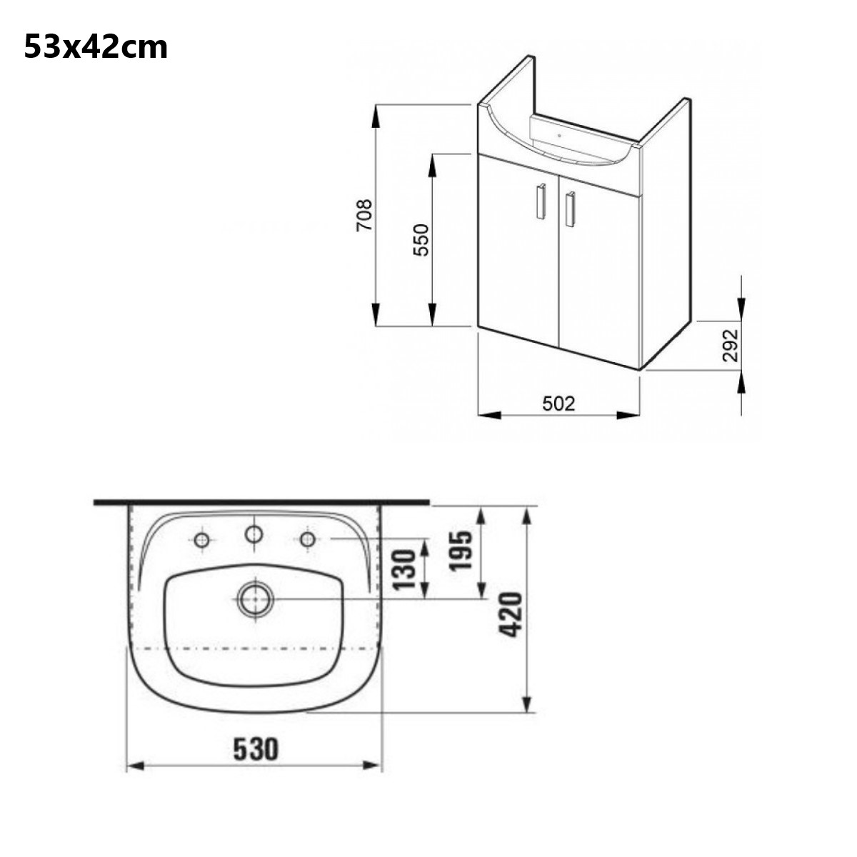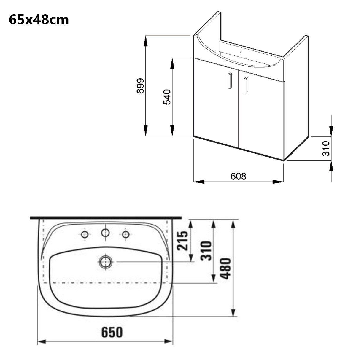 - Keramikas izlietne, novietota virmas centrā, ar maisītāja caurumu. Maisītājs neietilpst komplektācijā.