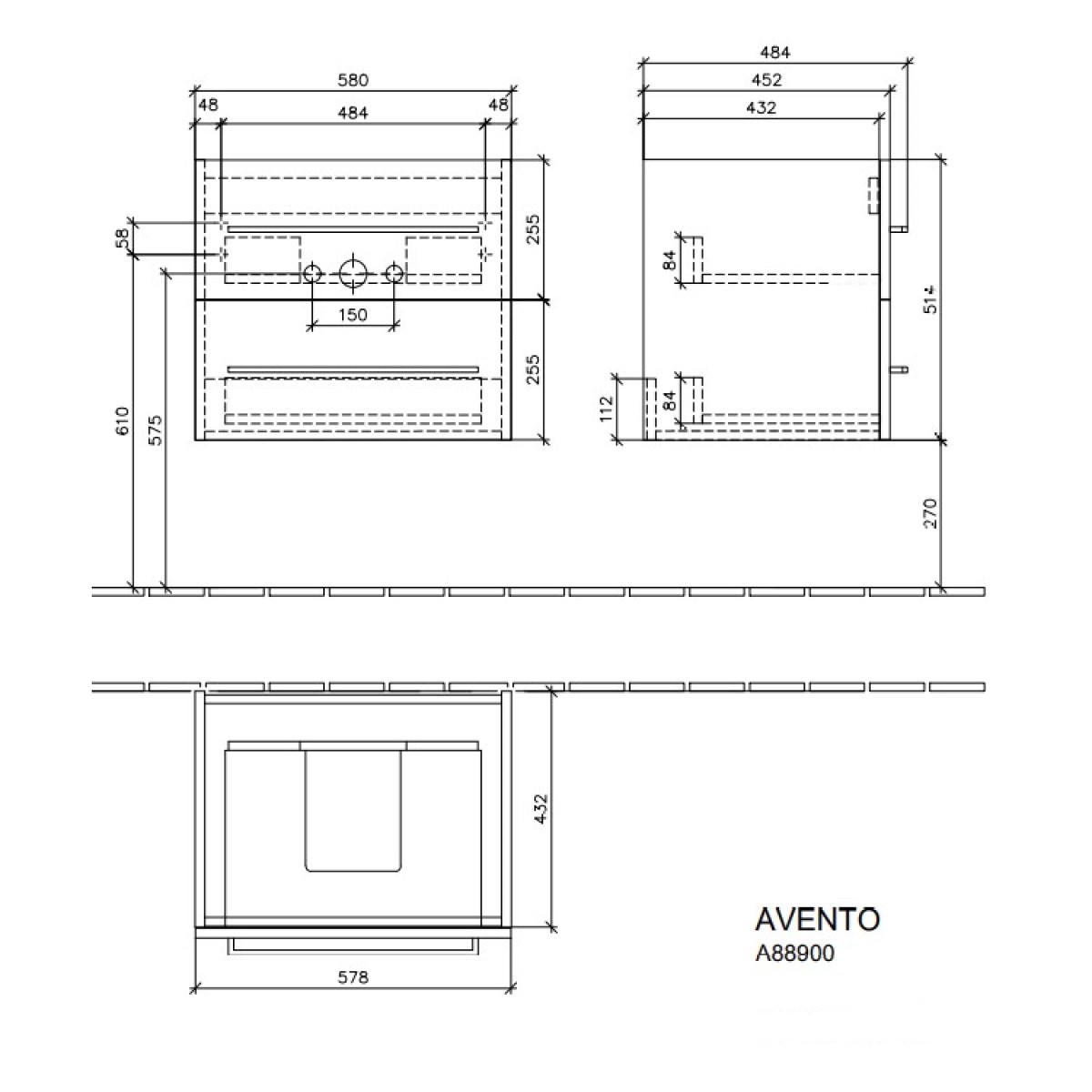 Bez izlietnes. Savienojums ar izlietni Villeroy & Boch Avento Vanity.