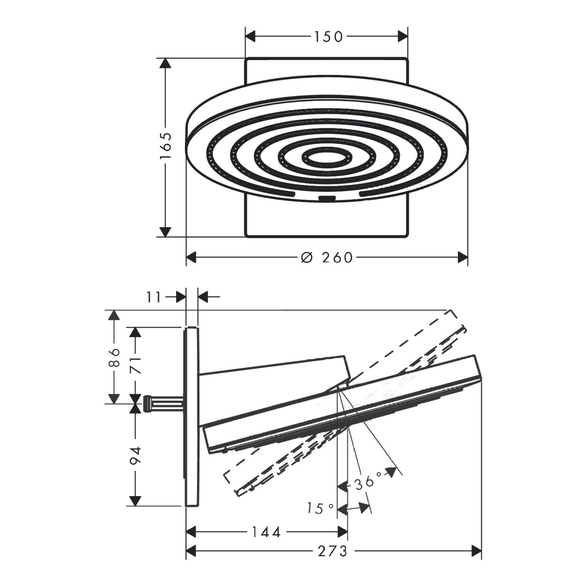 Lodveida savienojums - ērtai dušas leņķa regulēšanai, maināms no 15 līdz 36°.