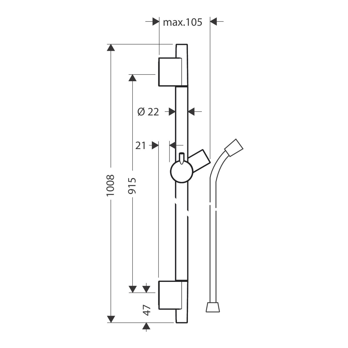 - Metāla rokas dušas turētājs ar bloķēšanas mehānismu, bezpakāpju, regulējams slīpuma leņķis.