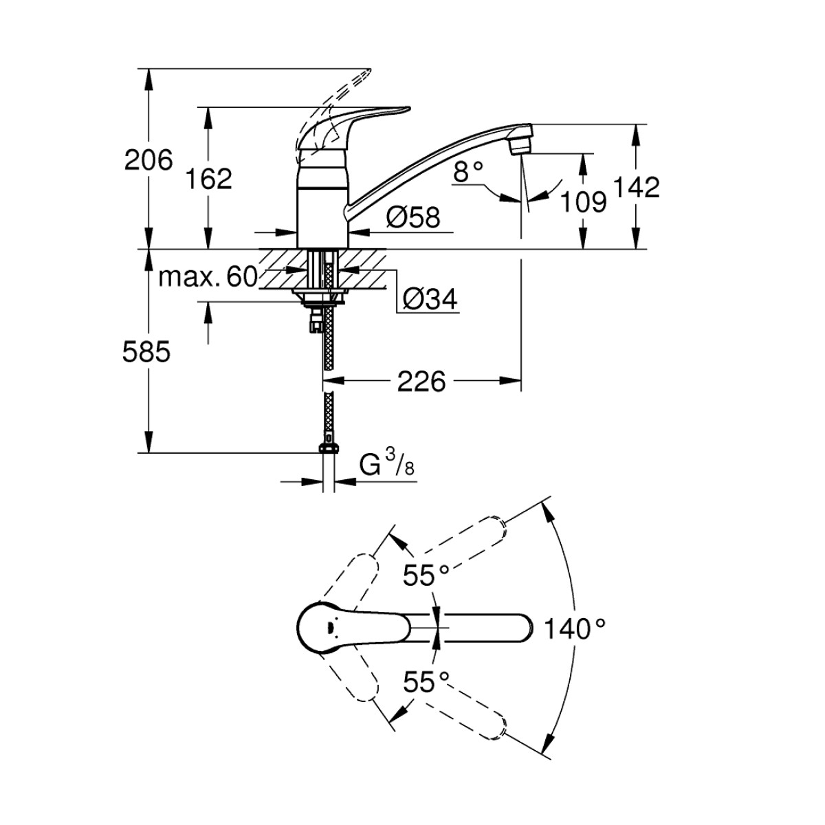 - GROHE SilkMove 35 mm keramikas kārtridžs.