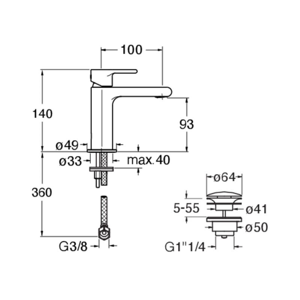 Vannas istabas izlietnes maisītājs ar 1 sviru, ar up&down.