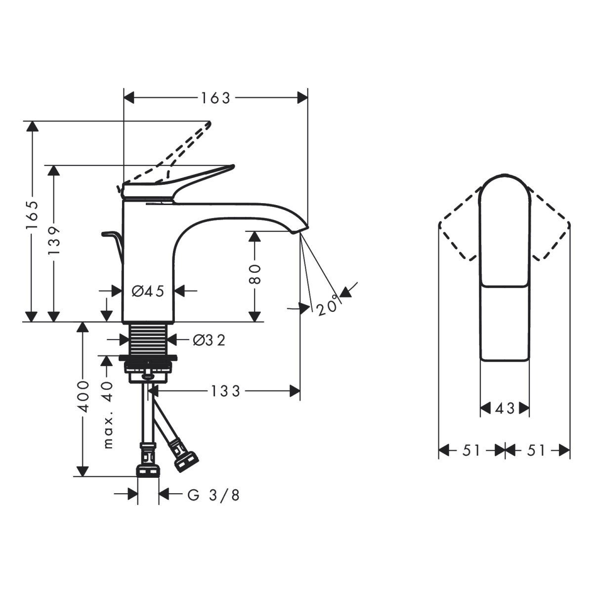 Hansgrohe Vivenis 80 Vannas istabas izlietnes maisītājs: