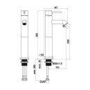 - Paaugstināts iztece 220mm no virsmas, paredzēts izlietņu bļodām.