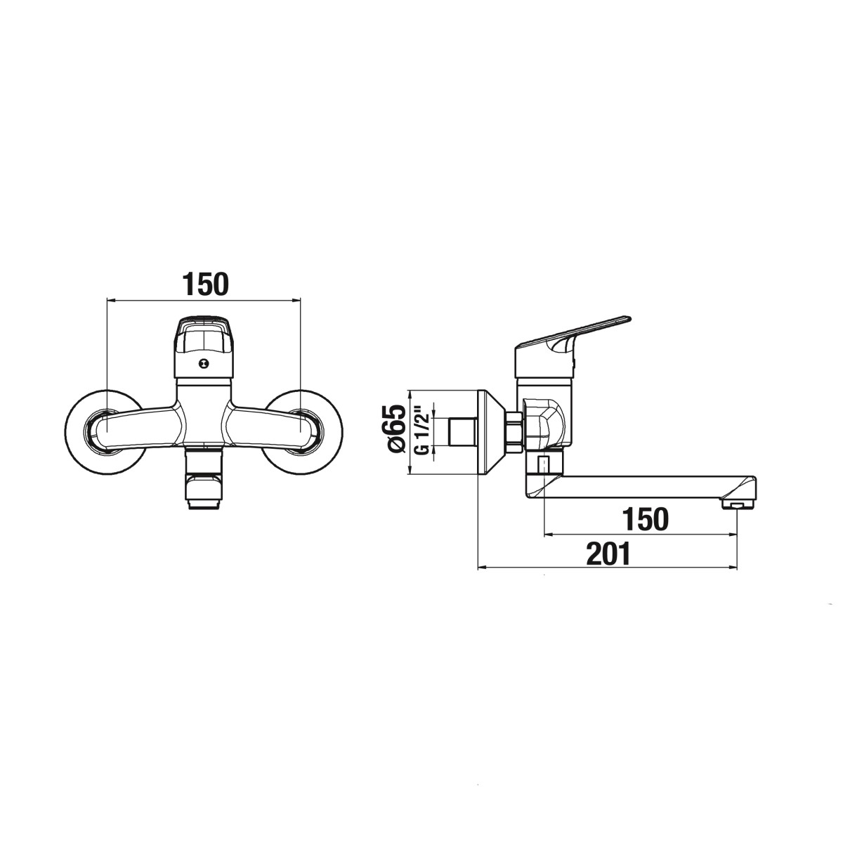 - Sienas izlietnes/virtuves jaucējkrāns ar grozāmu snīpi 150mm.
