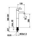 - Ūdens pieslēguma diametrs: 3/8".