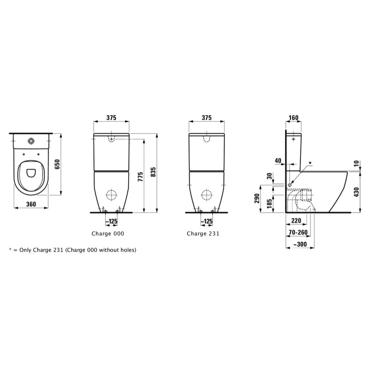 - Ūdens pievads skalojamajai kastei no apakšas kreisajā pusē, poda apakšai caurums ūdens padeves caurulei abās pusēs.