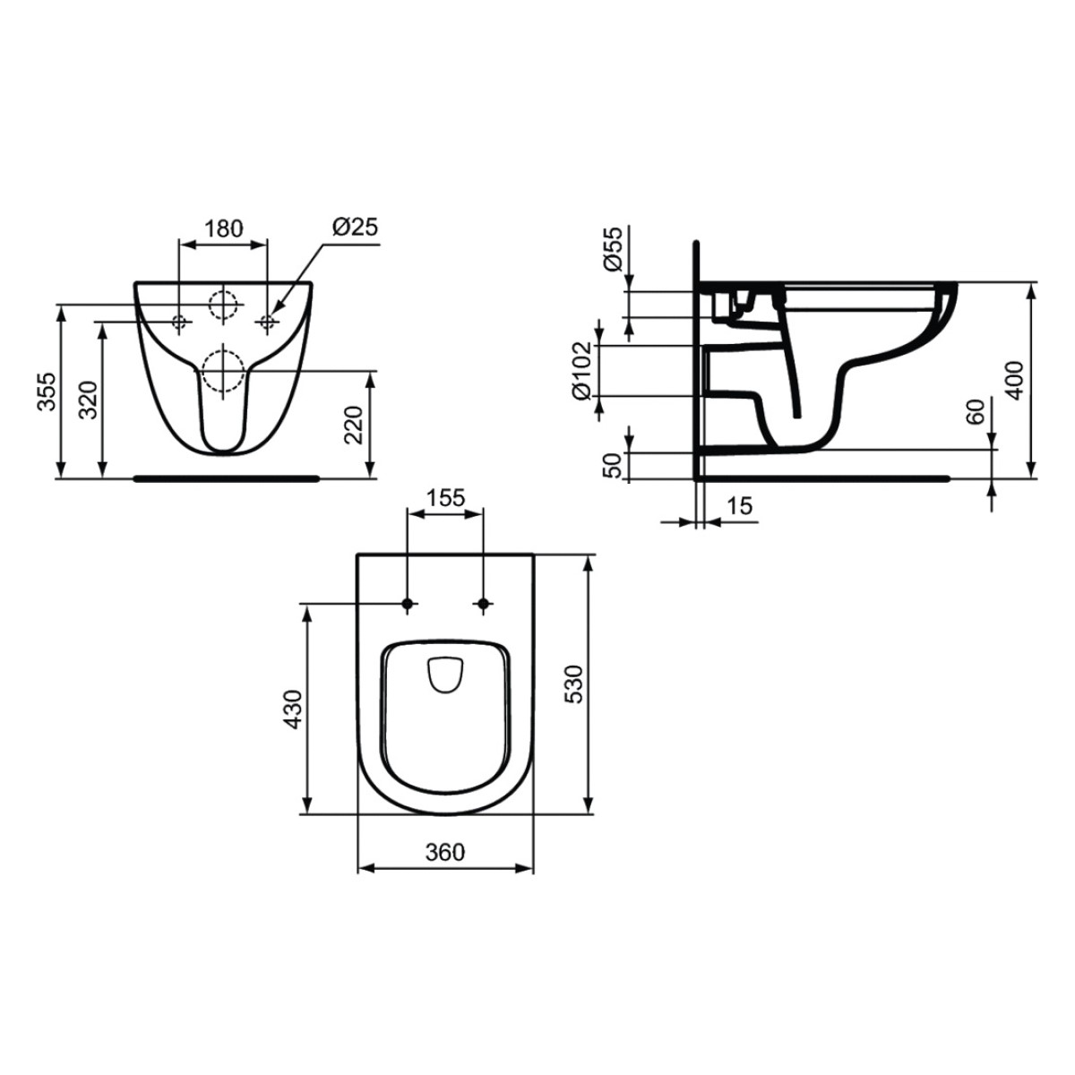 Ideal Standard Tempo Rimless Tualetes pods, stiprināms pie sienas: